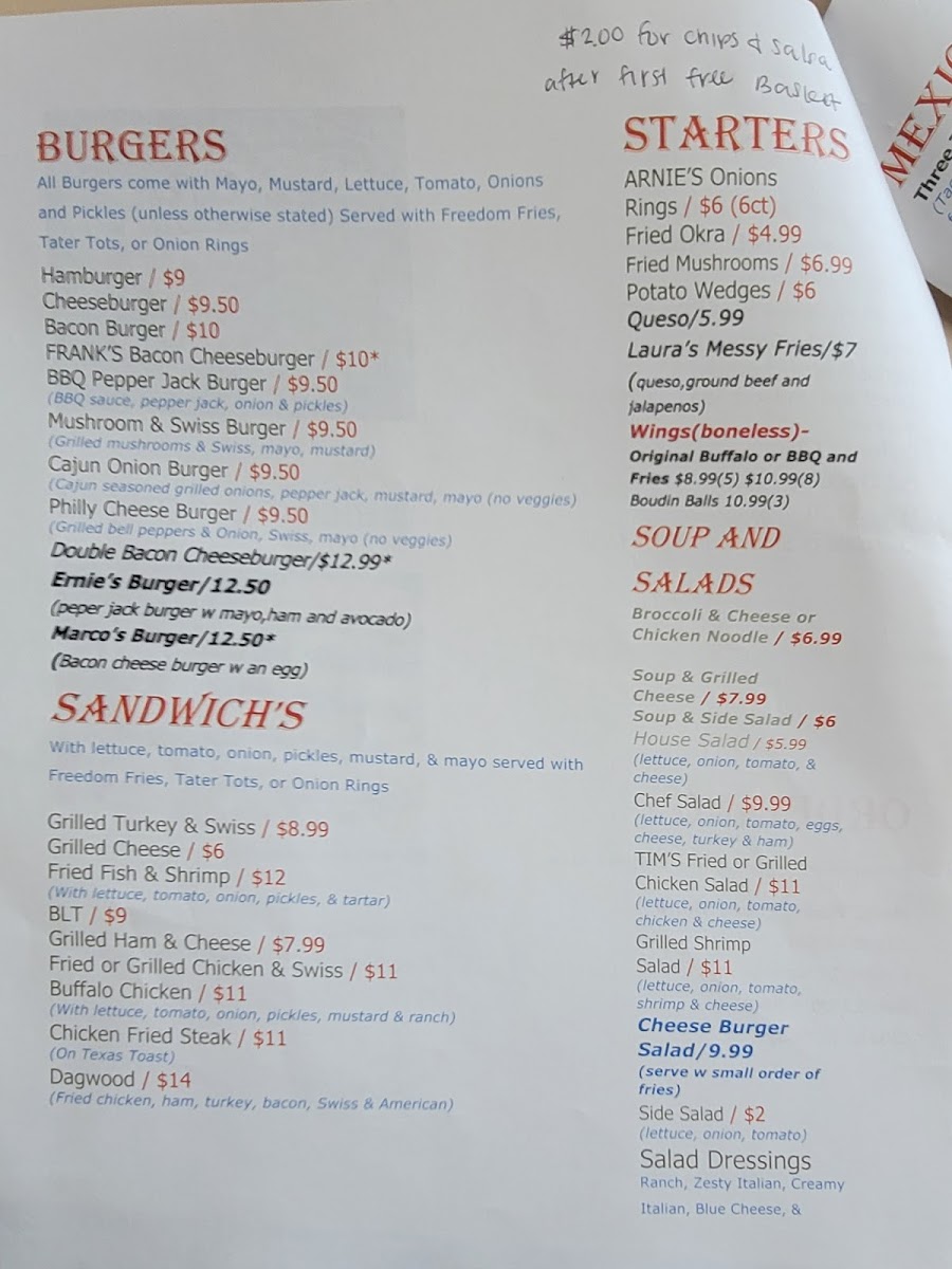 Welcome to Frank's Taco Station, a culinary gem located at 81 Front St in Riverside, TX. This vibrant eatery is a must-visit for taco lovers and comfort food enthusiasts alike. The menu is a delightful fusion of flavors, featuring a variety of starters such as Arnie's Onion Rings and Fried Mushrooms. The Mexican Plates showcase crowd-pleasers like Cody Johnson's Favorite Brisket Taco Plate and Supreme Nachos, ensuring every palate is catered to.